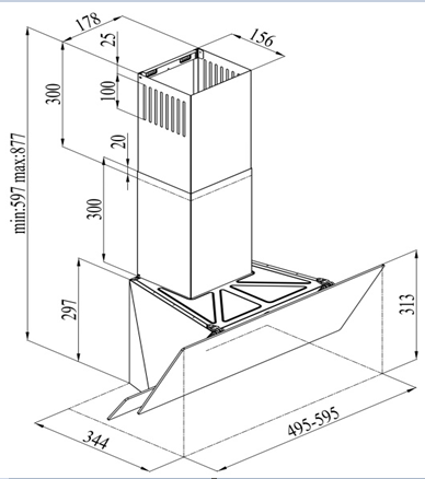 Описаниевытяжка наклонная, 50 см, 650 м/ч, черный/черное стекло