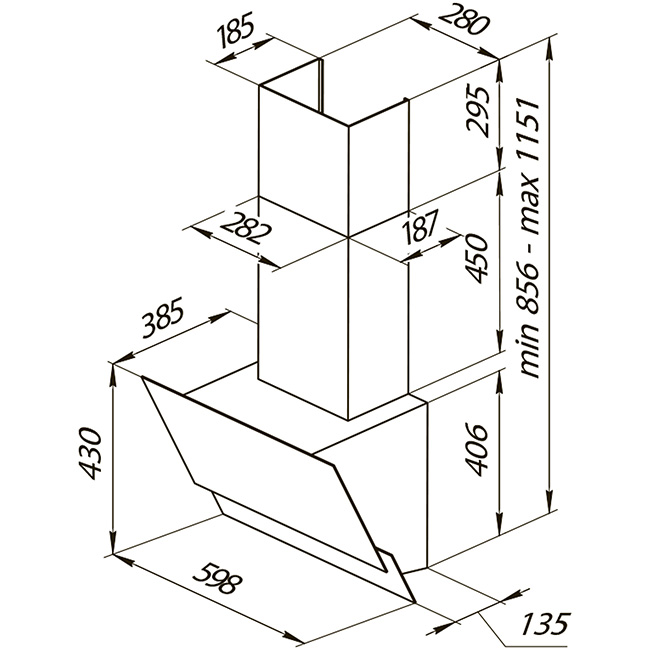 Описаниевытяжка наклонная, 60 см, 600 м3/ч, черный