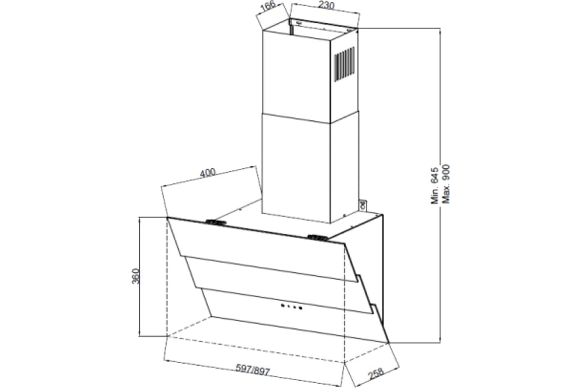 Описаниевытяжка наклонная, 60 см, 85 м3/ч, черный