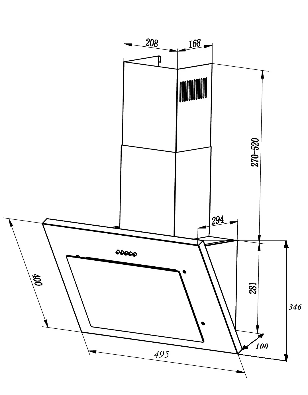 Описаниевытяжка наклонная, 50 см, 700 м3/ч, белое стекло