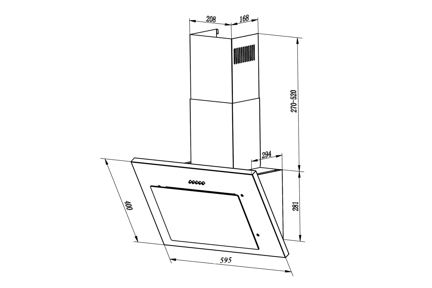 Описаниевытяжка наклонная, 60 см, 700 м3/ч, белое стекло