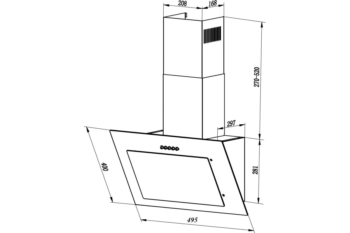 Описаниевытяжка наклонная, 50 см, 700 м3/ч, черное стекло
