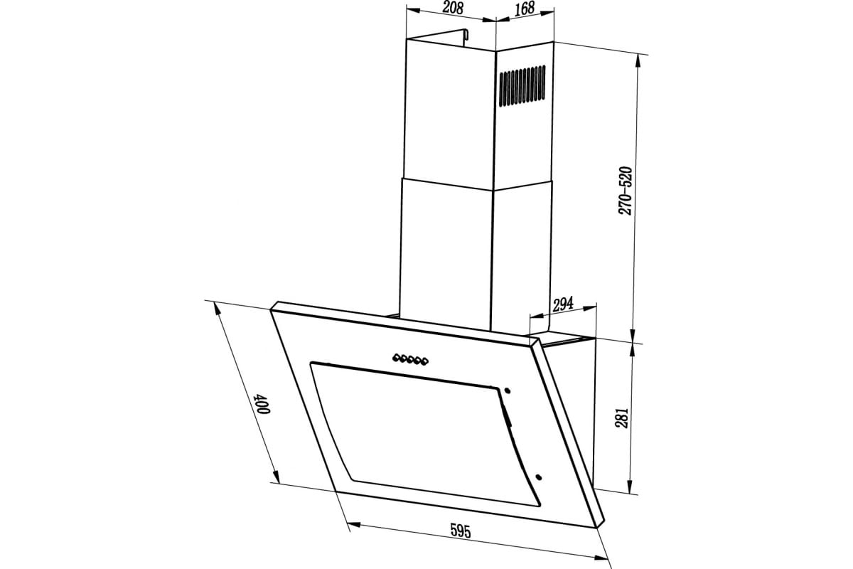 Описаниевытяжка наклонная, 60 см, 850 м3/ч, белое стекло
