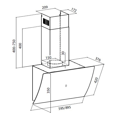 Описаниевытяжка наклонная, 90 см, 1050 м3/ч, черное стекло