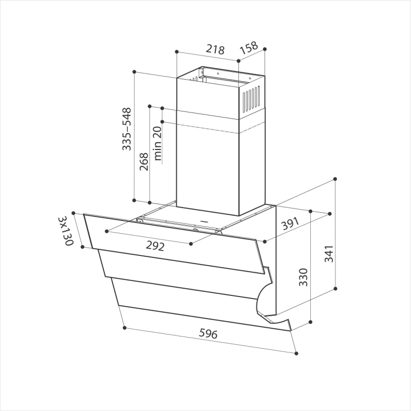 Описаниевытяжка наклонная, 60 см, 700 м3/ч, белое стекло