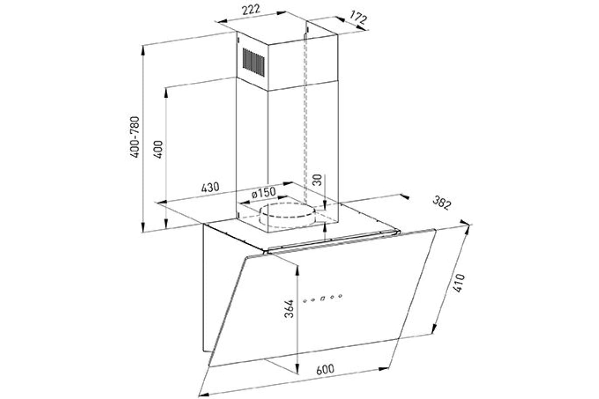 Описаниевытяжка наклонная, 60 см, 1000 м3/ч, белый