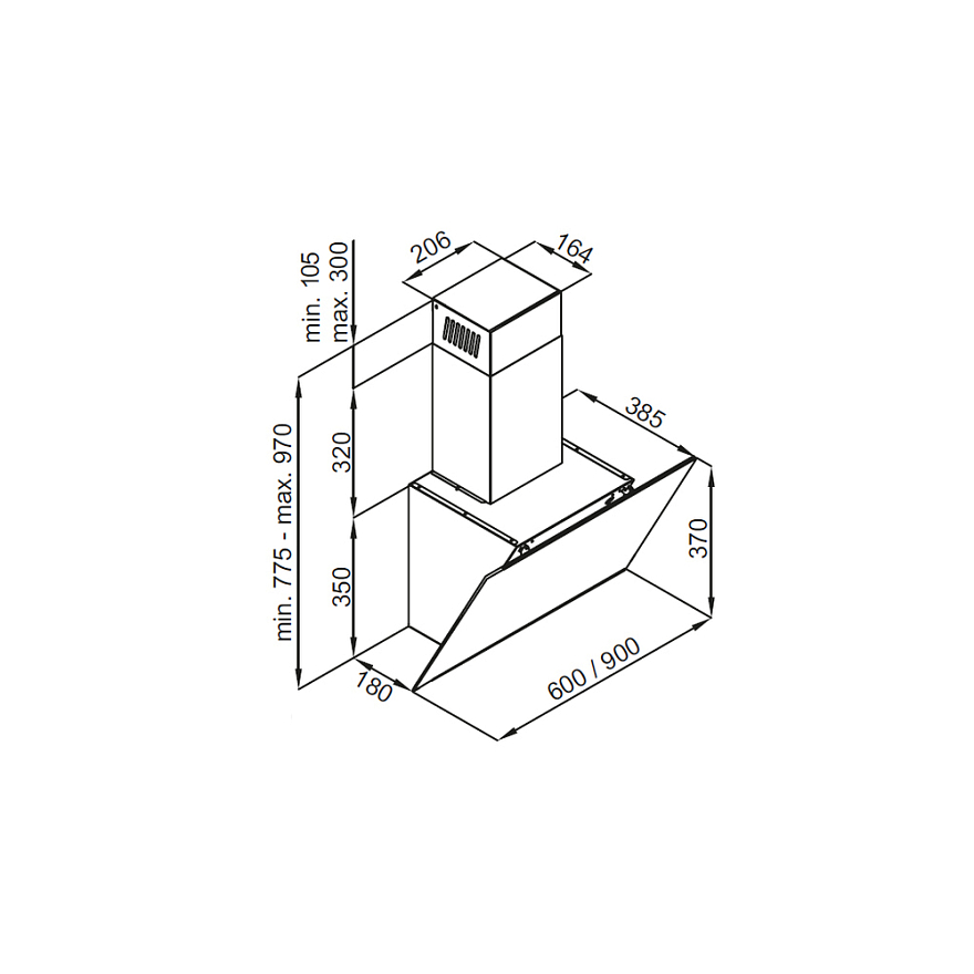 Описаниевытяжка наклонная, 60 см, 1270 м3/ч, черный матовый