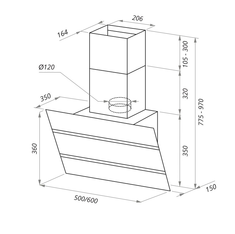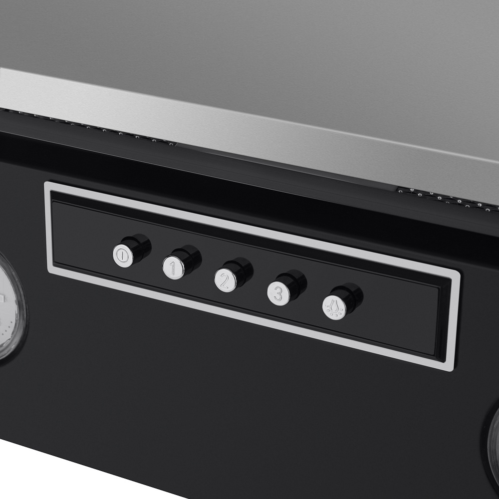 Описаниевытяжка наклонная, 60 см, 850 м3/ч, нержавеющая сталь/черное стекло