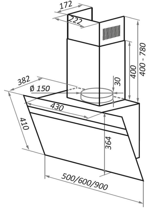 Описаниевытяжка наклонная, 60 см, 1000 м3/ч, черное стекло