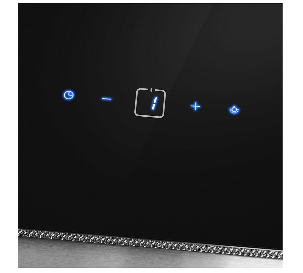 Описаниевытяжка наклонная, 90 см, 1050 м3/ч, нержавеющая сталь/черное стекло