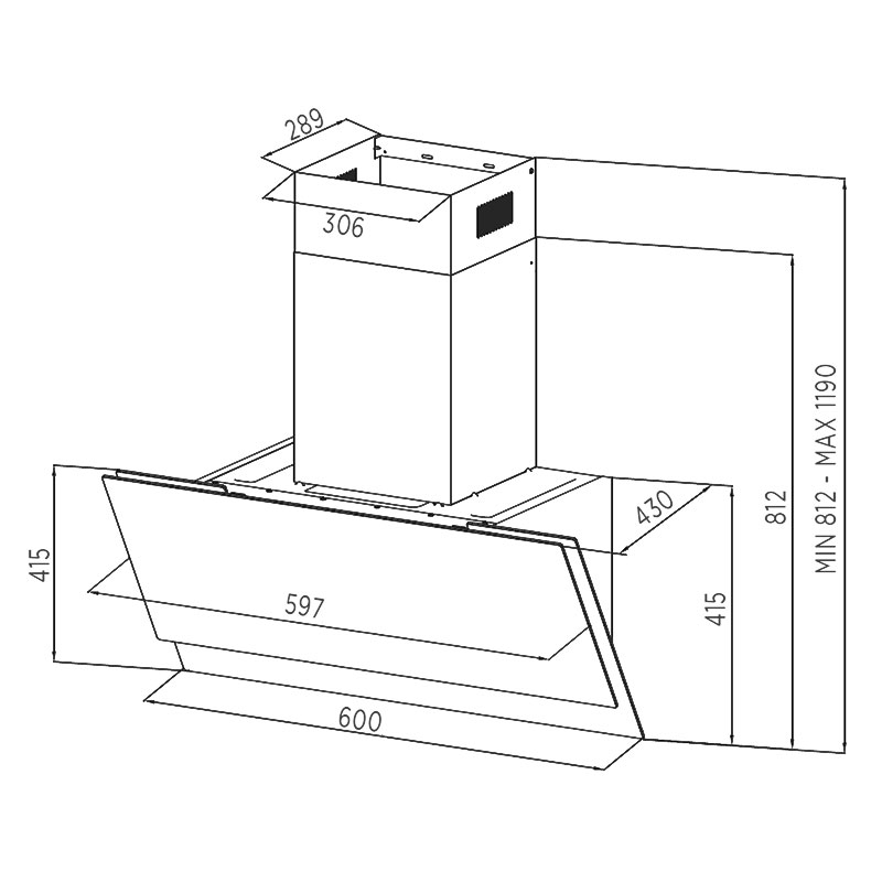 Описаниевытяжка наклонная, 60 см, 1150 м3/час, черное стекло