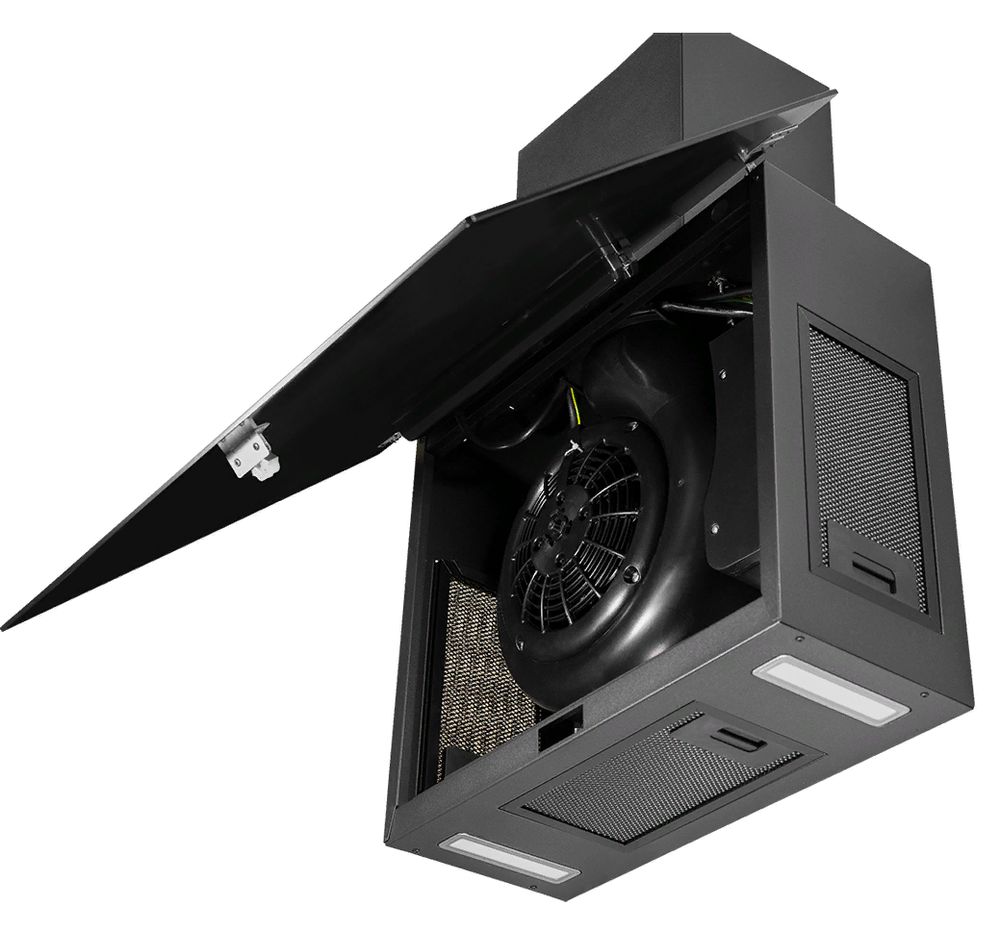 Описаниевытяжка наклонная, 60 см, 1050 м3/ч, черное стекло