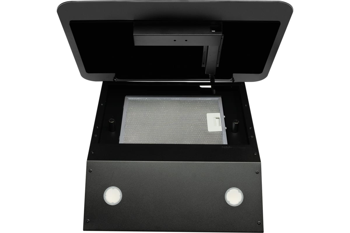 Описаниевытяжка наклонная, 60 см, 850 м3/ч, черное стекло