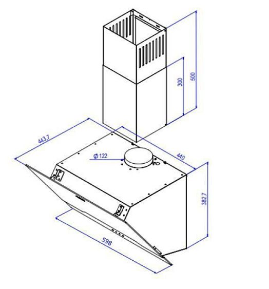 Описаниевытяжка наклонная, 60 см, 850 м3/ч, черное стекло