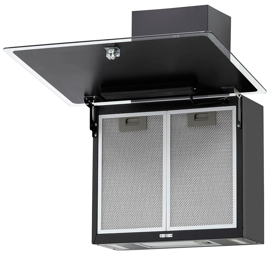 Описаниевытяжка наклонная, 54 см, 850 м3/ч, черное стекло