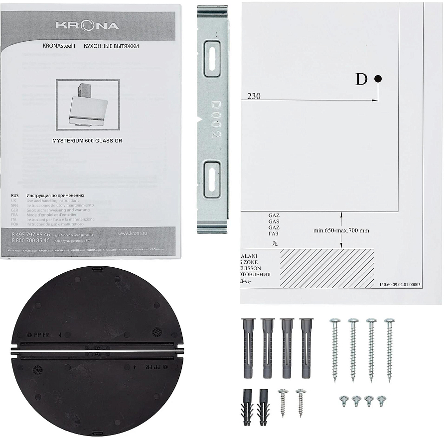 Krona MYSTERIUM 600 GLASS GR S Вытяжка наклонная