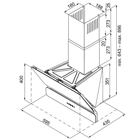 Описаниевытяжка наклонная, 60 см, 710 м3/ч, серый