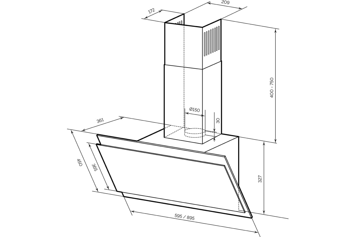 Описаниевытяжка наклонная, 60 см, 1050 м3/ч, черная сталь/стекло