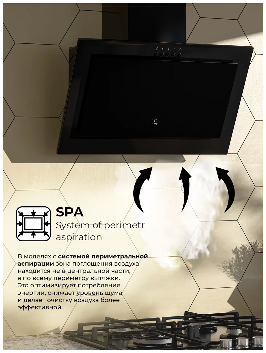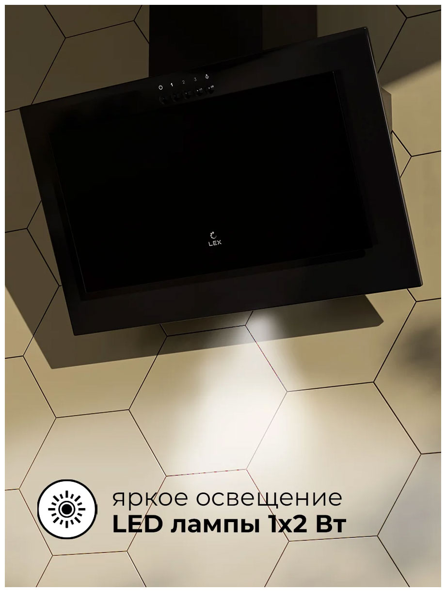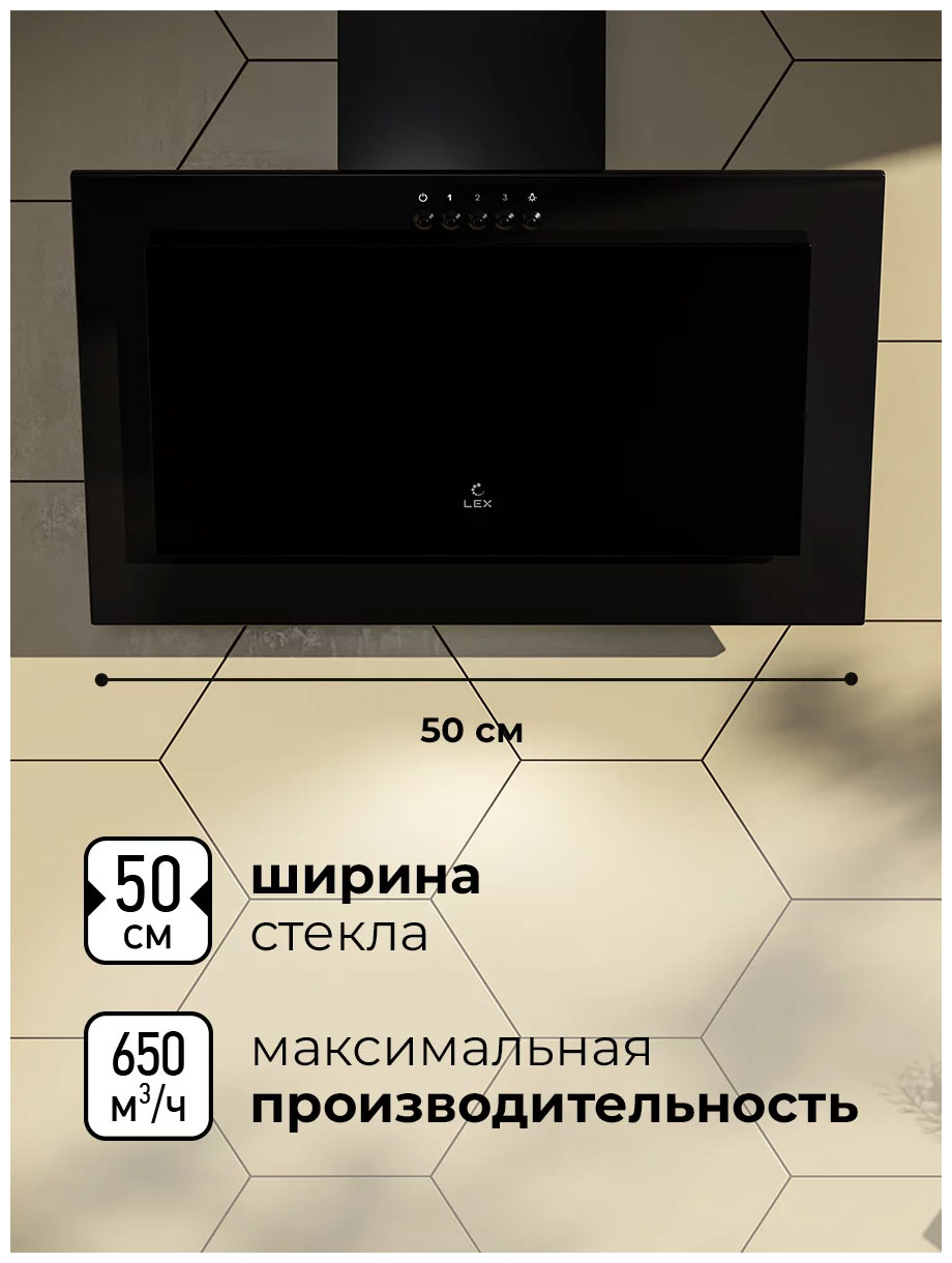 Описаниевытяжка наклонная, 50 см, 650 м3/ч, черный