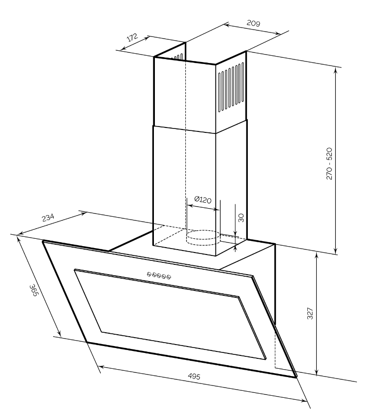 Описаниевытяжка наклонная, 50 см, 650 м3/ч, слоновая кость