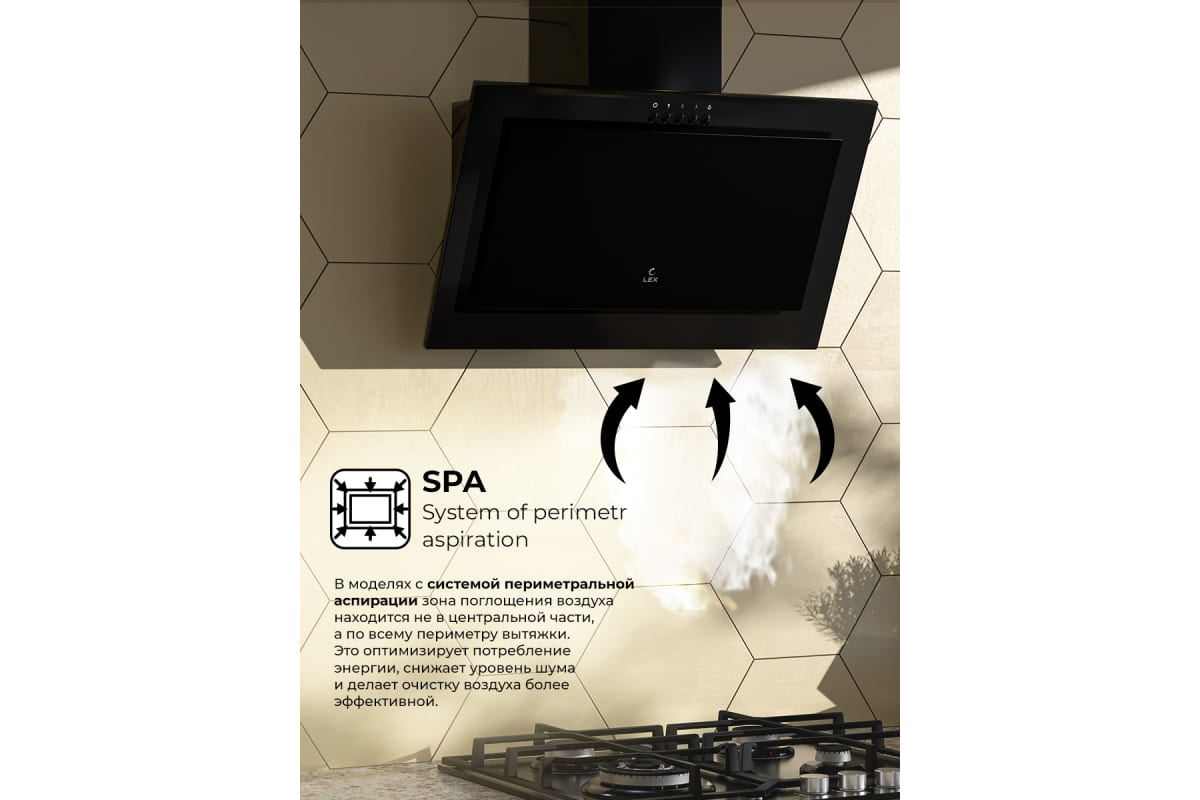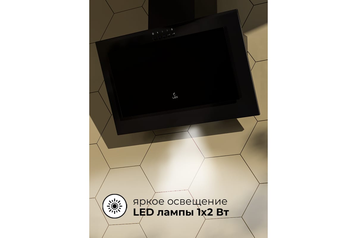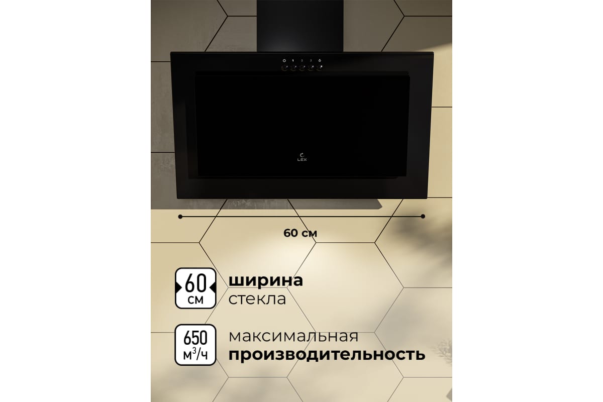 Описаниевытяжка наклонная, 60 см, 650 м3/ч, черный