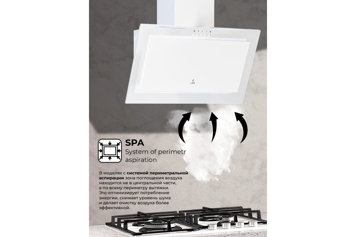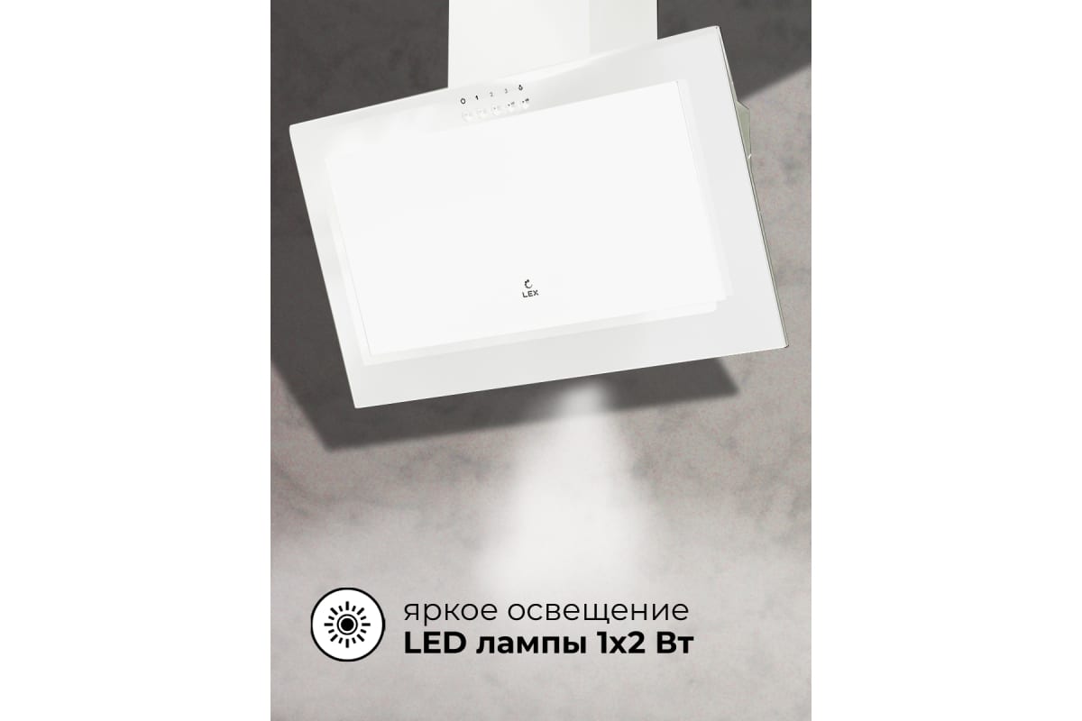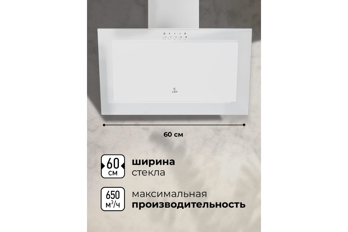 Описаниевытяжка наклонная, 60 см, 650 м3/ч, белый