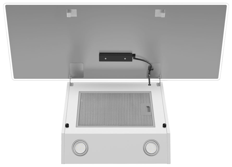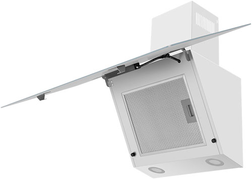 Описаниевытяжка наклонная, 90 см, 850 м3/ч, белое стекло