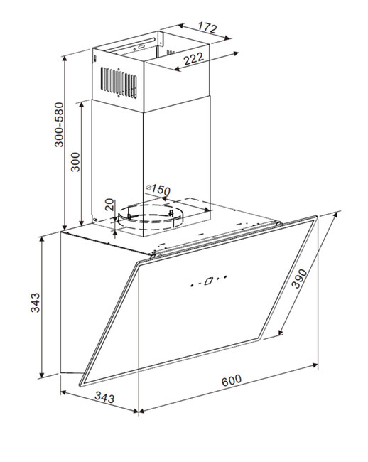 Описаниевытяжка наклонная, 60 см, 850 м3/ч, белый