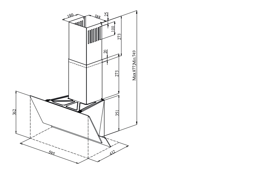 Описаниевытяжка наклонная, 60 см, 700 м3/ч, белый