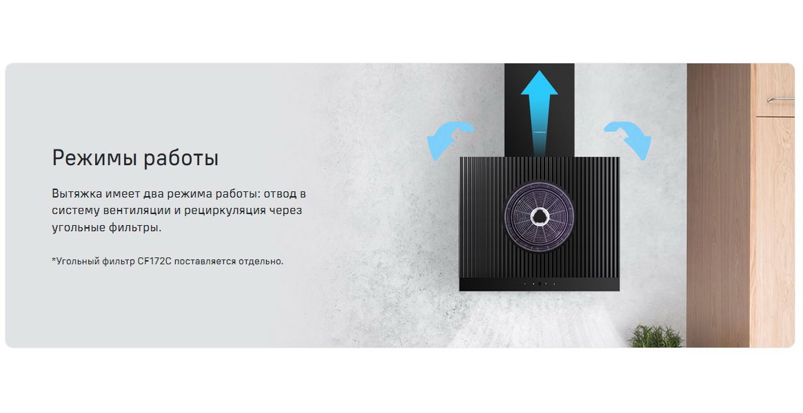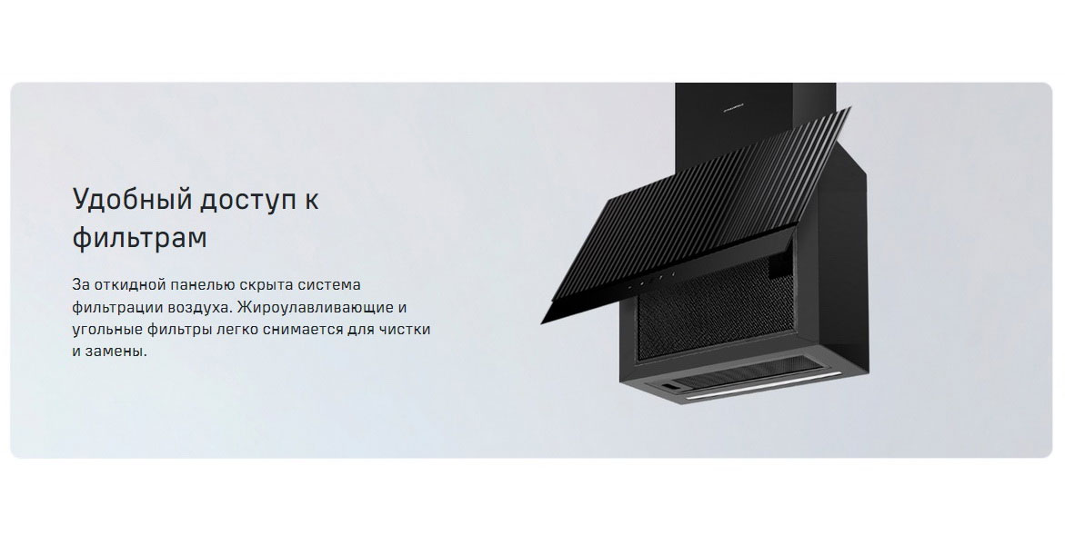 Описаниевытяжка наклонная, 60 см, 1250 м3/ч, черный