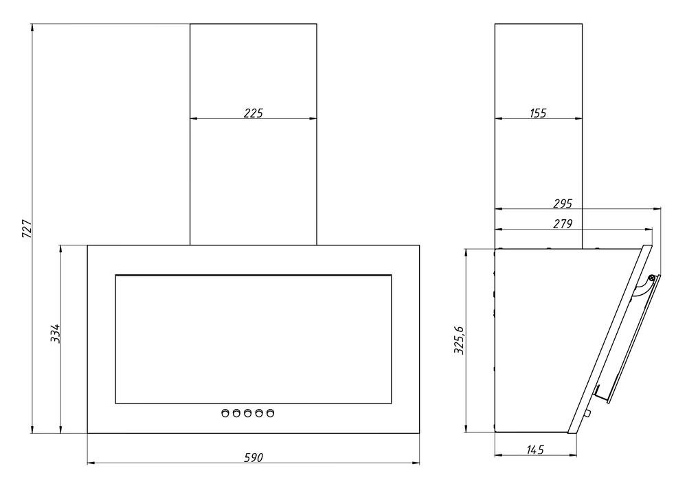 Описаниевытяжка наклонная, 60 см, 430 м3/ч, черный/черное стекло