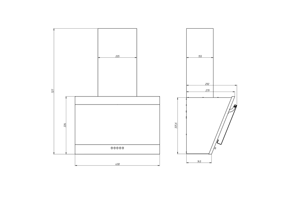 Описаниевытяжка наклонная, 50 см, 430 м3/ч, белый