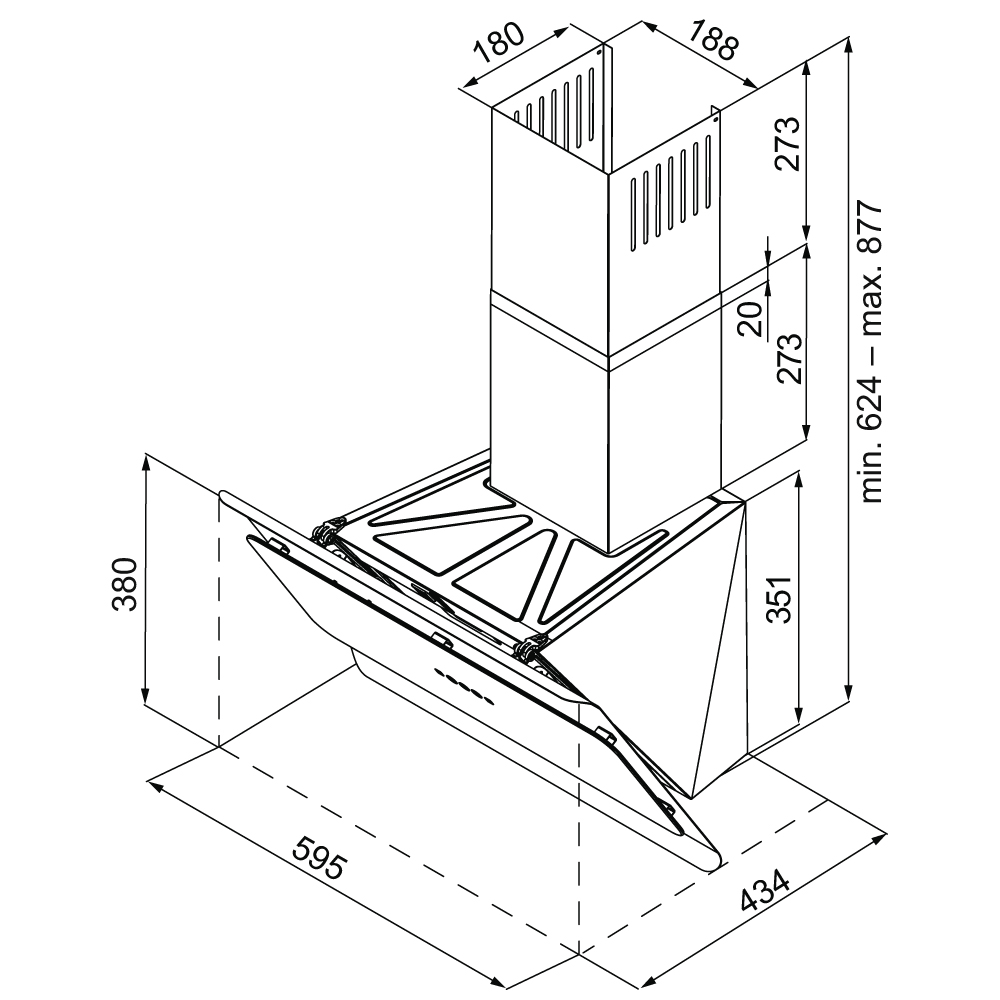 Описаниевытяжка наклонная, 60 см, 710 м3/ч, черный металл/стекло