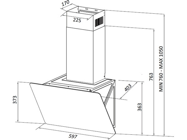 Описаниевытяжка наклонная, 60 см, 900 м3/час, черное стекло