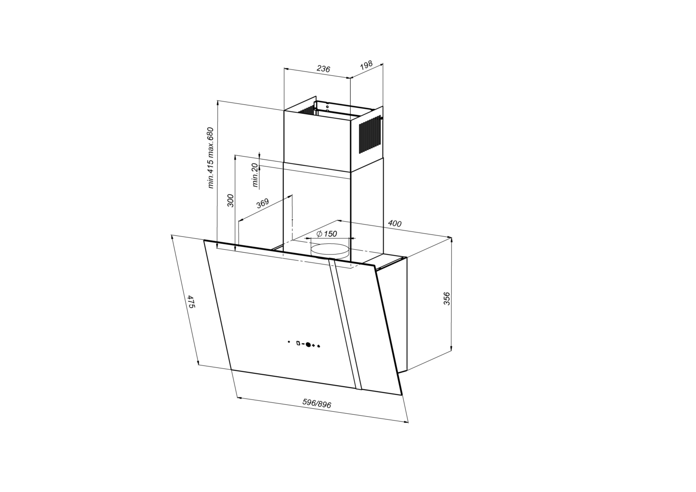 Описаниевытяжка наклонная, 90 см, 1200 м/ч, черный