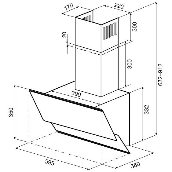 Описаниевытяжка наклонная, 60 см, 1100 м3/ч, белое стекло/нержавеющая сталь