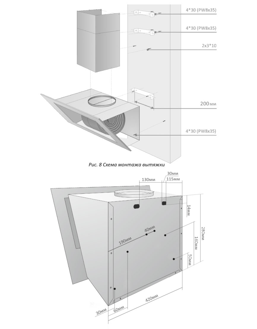 Описаниевытяжка наклонная, 60 см, 800 м3/ч, черный