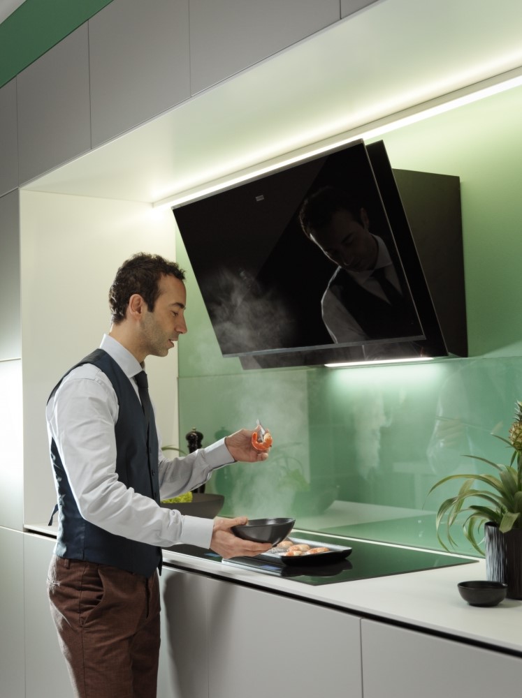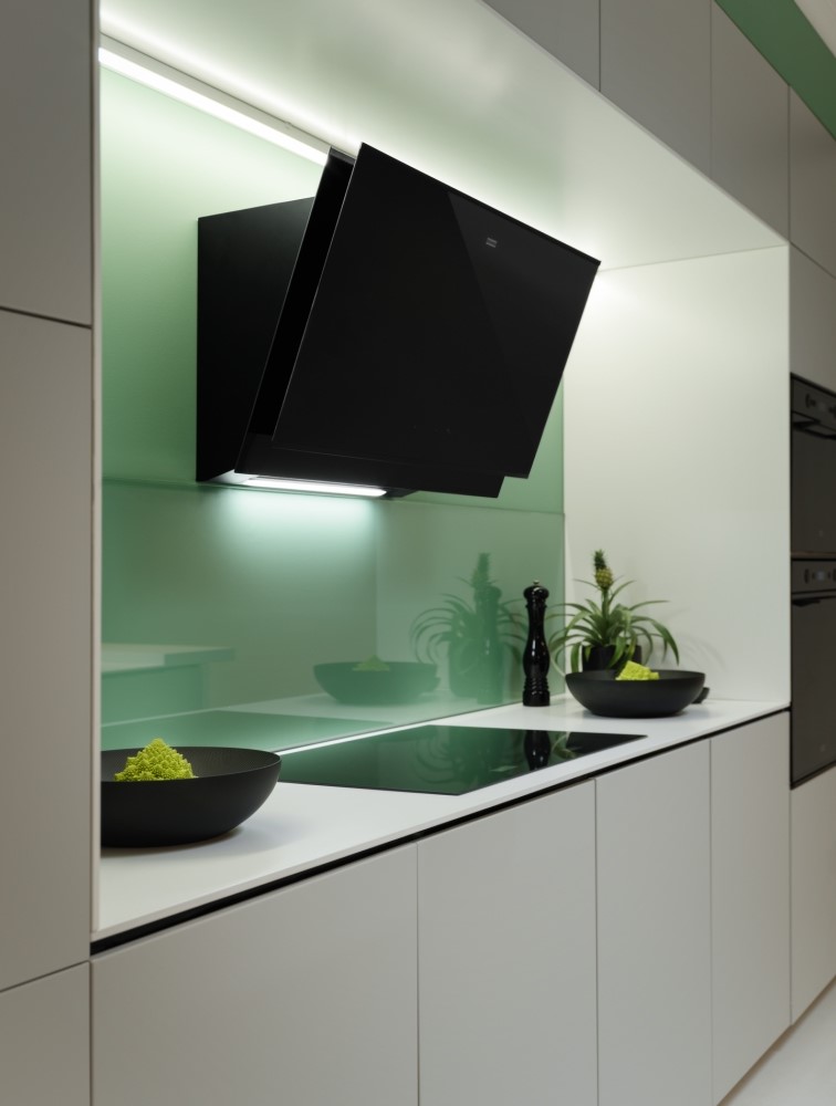 Описаниевытяжка наклонная, 90 см, 1200 м3/ч, черный