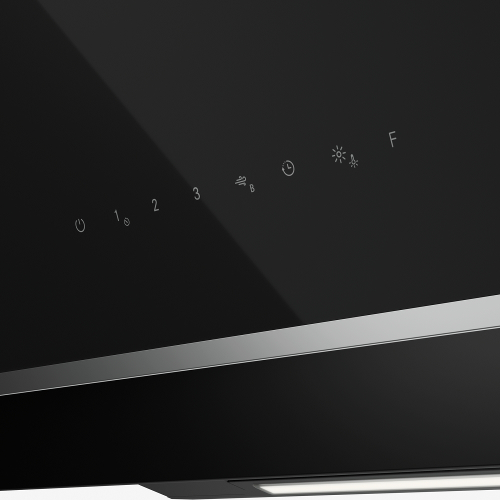 Описаниевытяжка наклонная, 90 см, 1200 м3/ч, черный/нержавеющая сталь