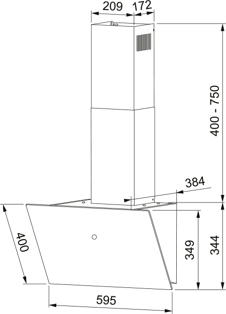 Описаниевытяжка наклонная, 60 см, 750 м3/ч, черный