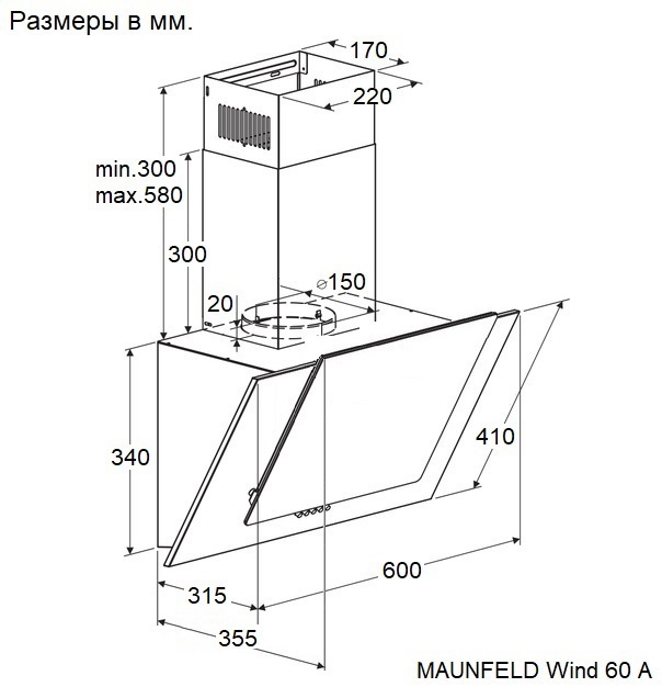 Maunfeld Wind 60 A White Вытяжка наклонная