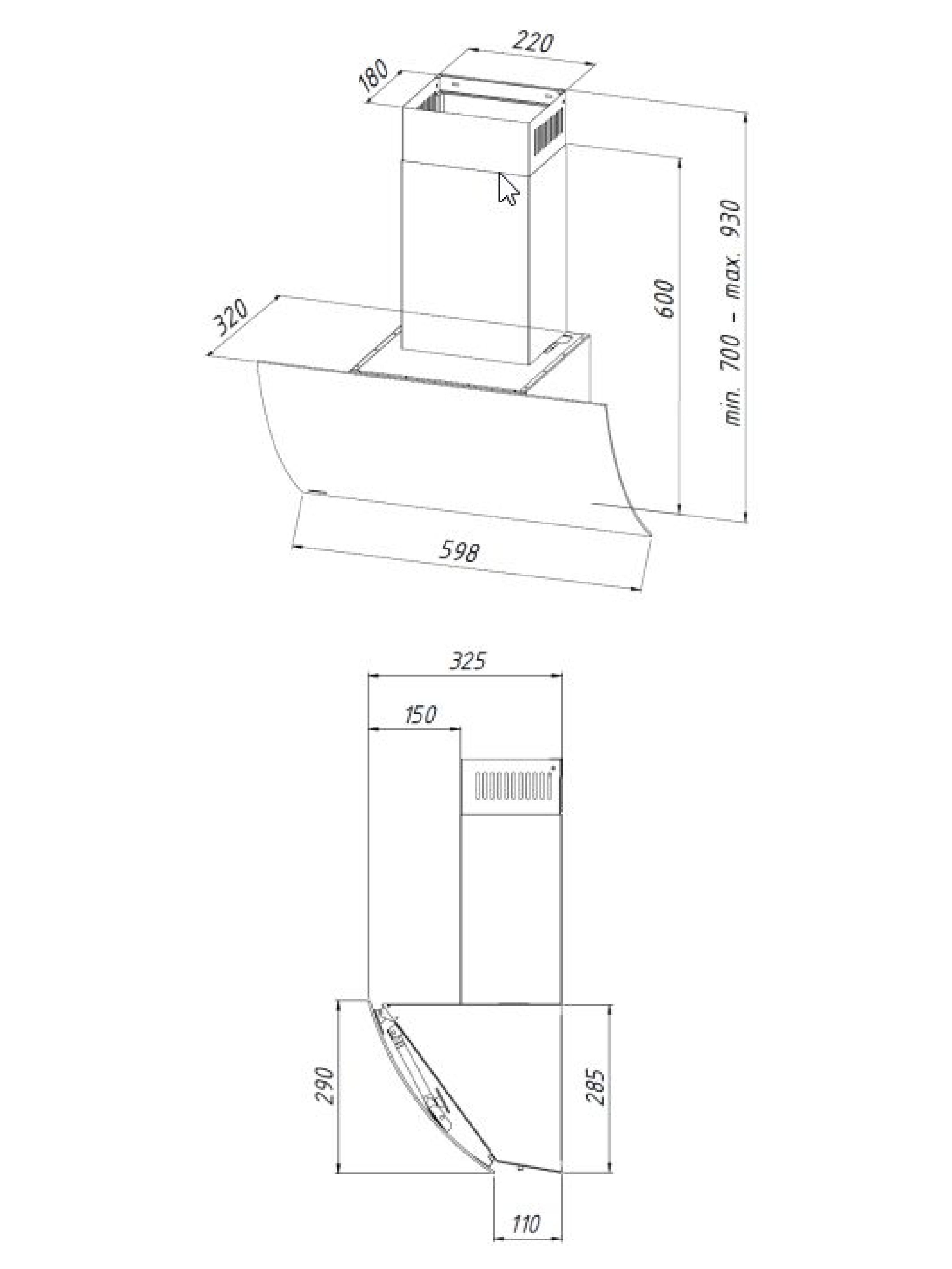 Описаниевытяжка наклонная, 60 см, 1080 м3/ч, черный