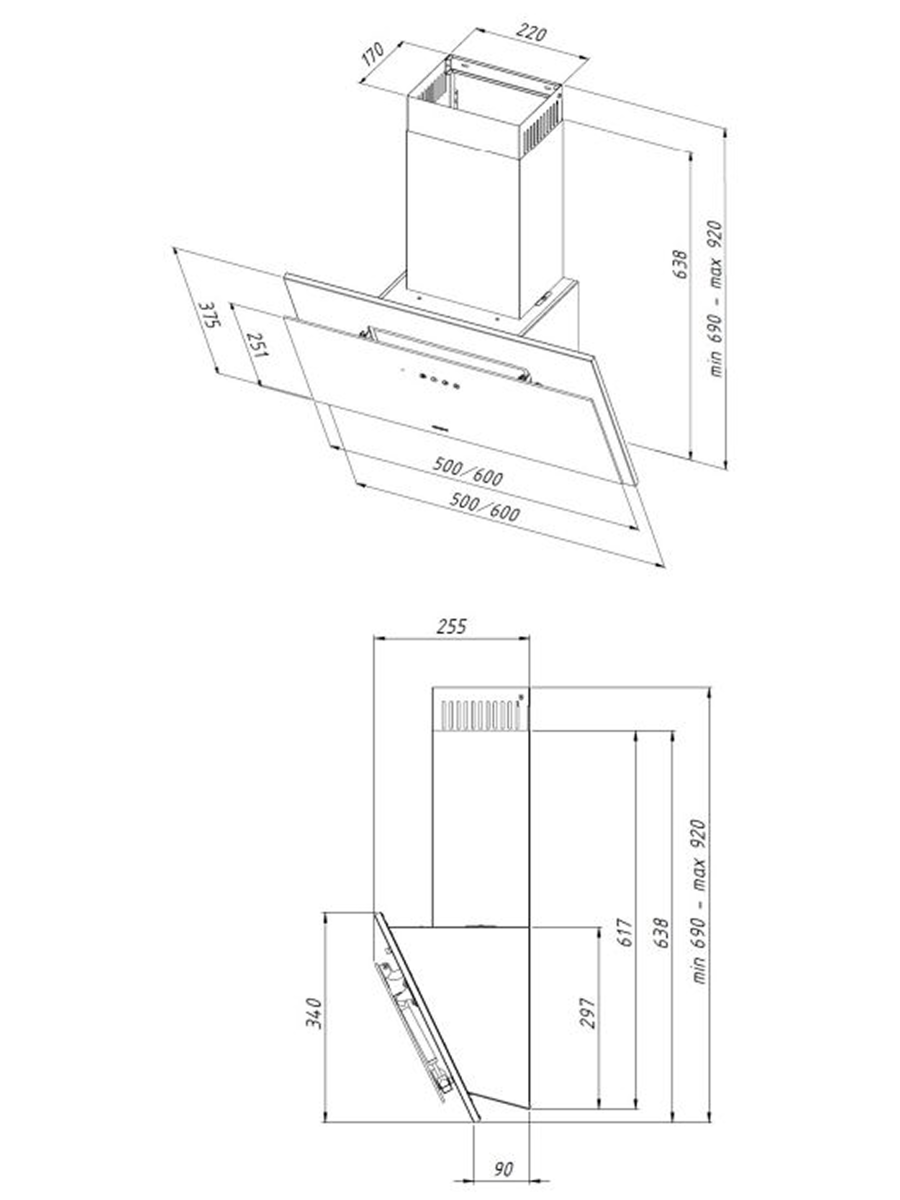 Описаниевытяжка наклонная, 60 см, 1080 м3/ч, белый