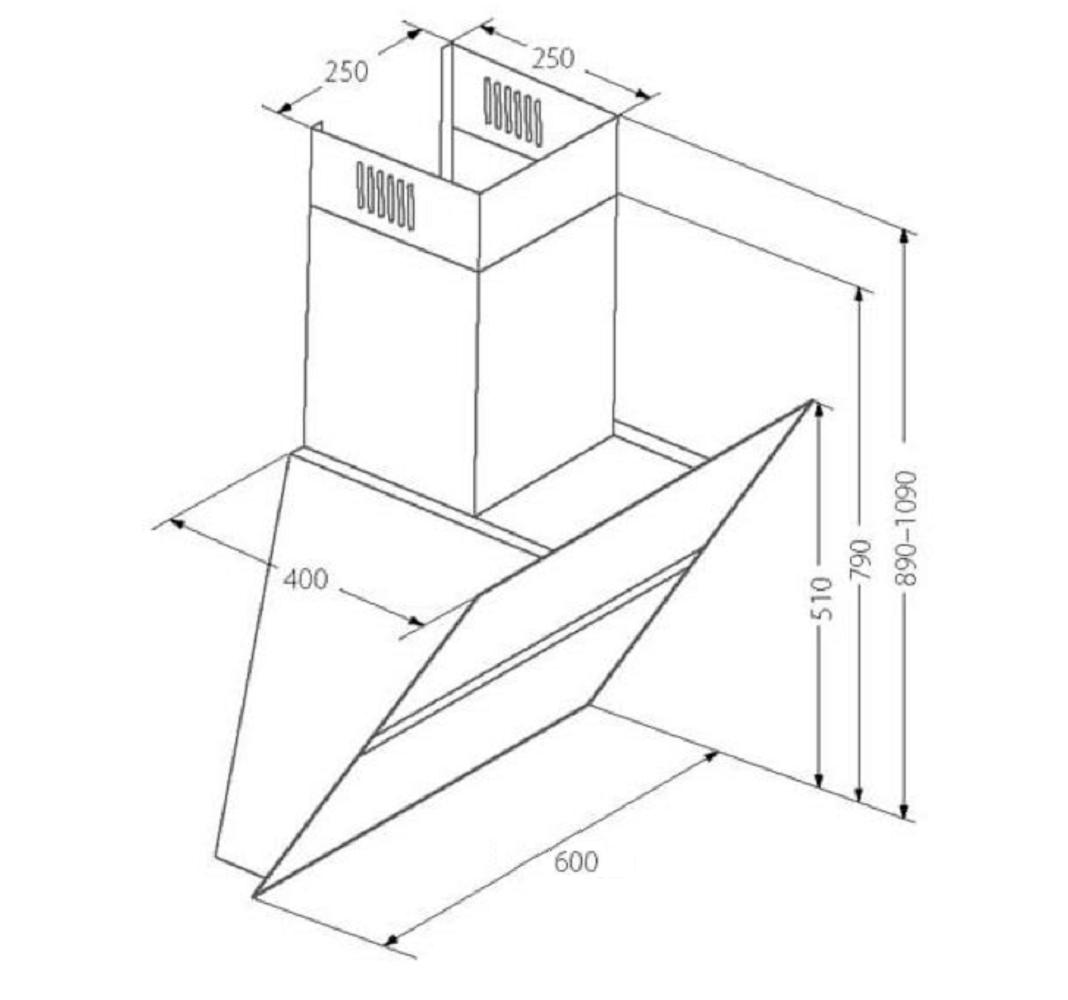 Описаниевытяжка наклонная, 60 см, 1400 м3/ч, черный