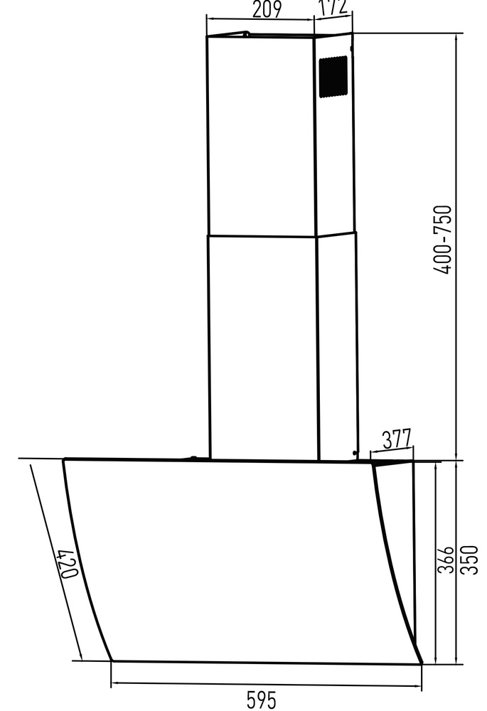 Описаниевытяжка наклонная, 60 см, 1000 м3/ч, черный