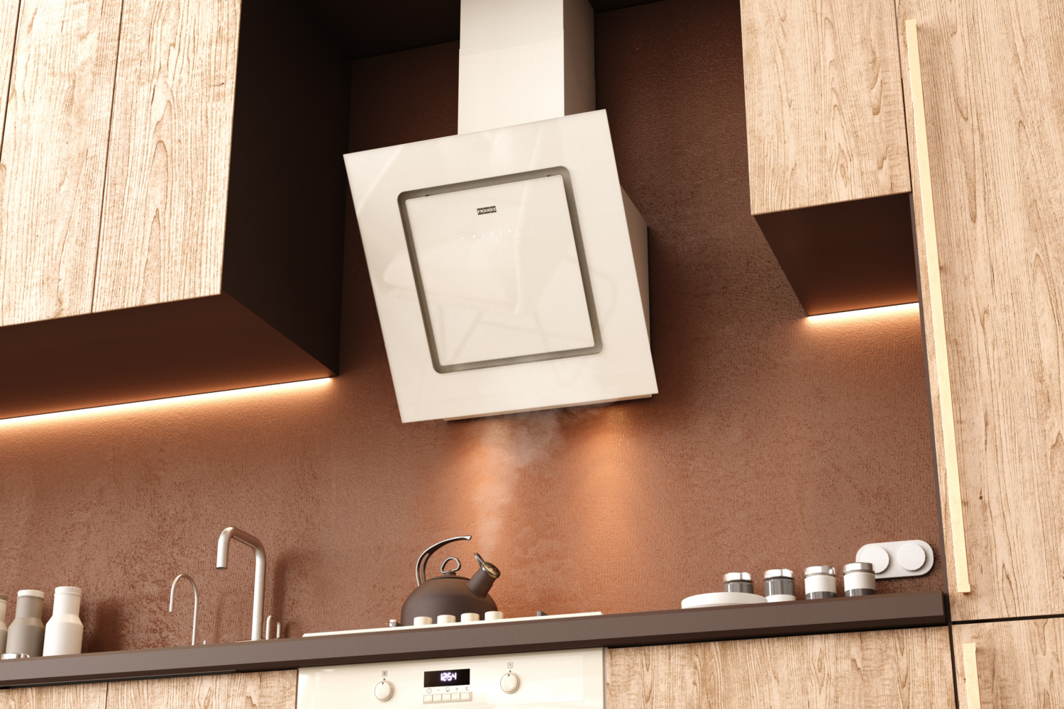 Описаниевытяжка наклонная, 60 см, 1000 м3/ч, бежевый
