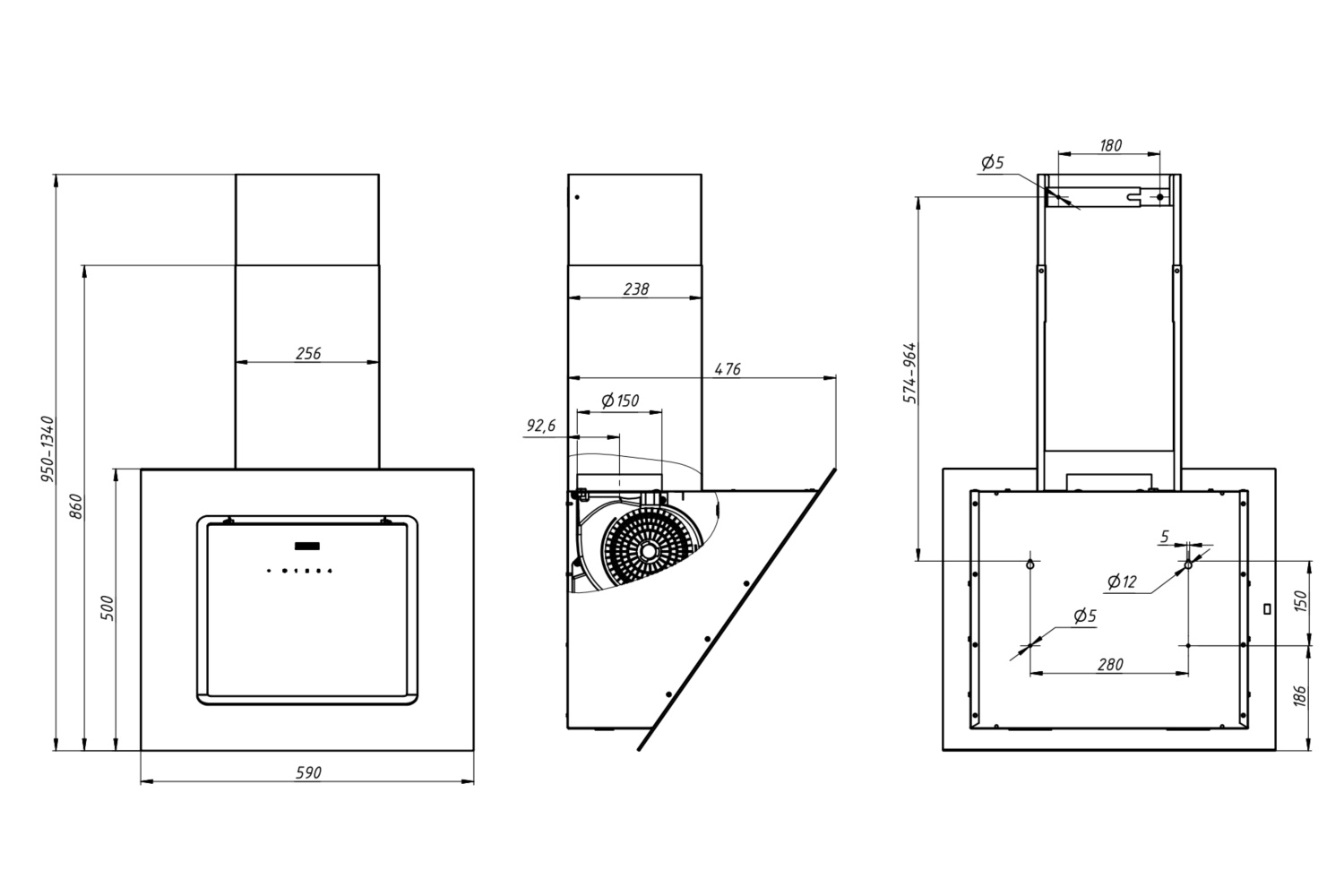 Описаниевытяжка наклонная, 60 см, 1000 м3/ч, черный