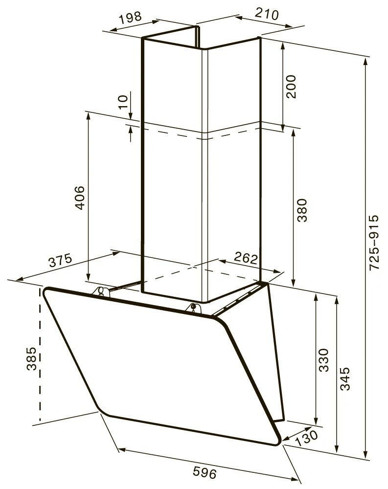 Описаниевытяжка наклонная, 60 см, 1000 м3/ч, черное стекло