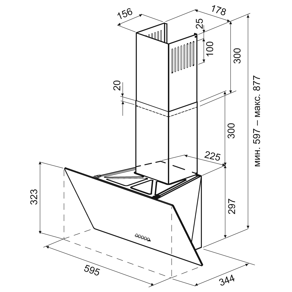Описаниевытяжка наклонная, 60 см, 700 м3/ч, белый
