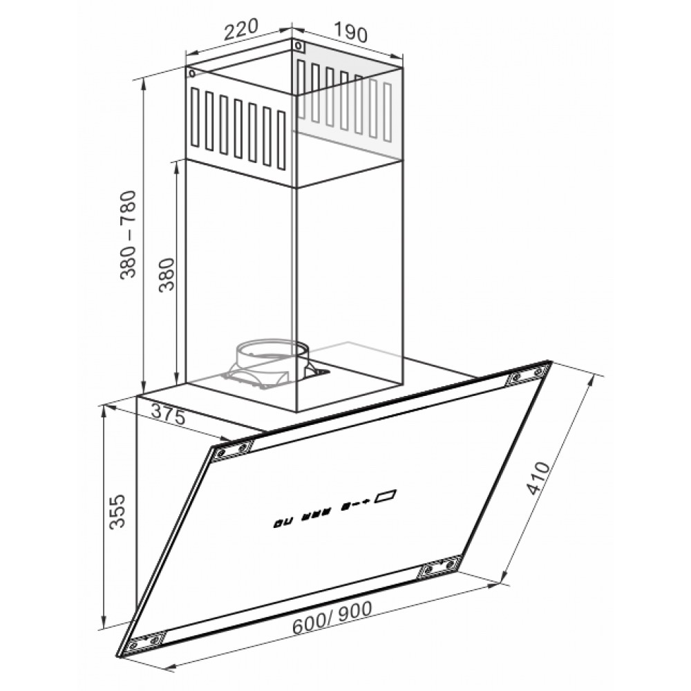 Описаниевытяжка наклонная, 60 см, 1000 м3/ч, слоновая кость/ античное золото